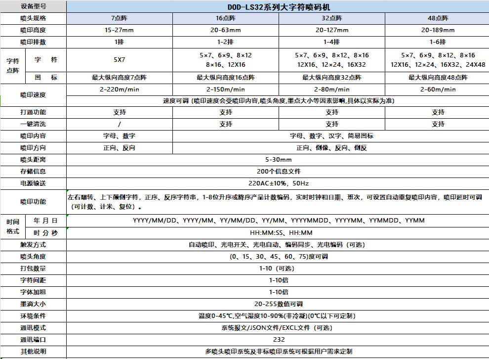 ●墨滴大小可调:可根据生产需要调节墨滴大小,实现点阵字与实体字效果。